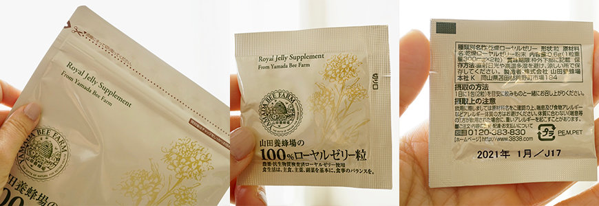 山田養蜂場的100%蜂王乳錠是這樣的夾鏈袋包裝而不是瓶裝喔!