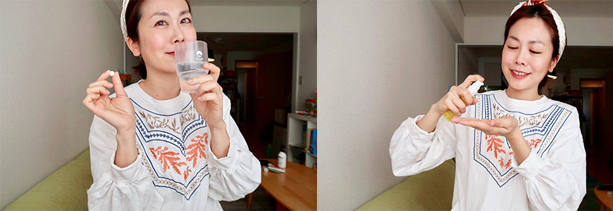 基本上我的身體內外保養都是跟著我媽媽的腳步,國小開始媽媽就讓我擦化妝水,時常燉湯給我們吃。提醒我要防曬要補充維他命和維生素,還要認真運動。記得媽媽也是四十歲左右就開始吃蜂王乳,每次她打開冰箱時的表情都讓我印象深刻