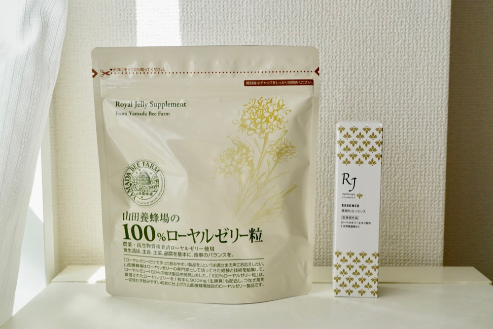在挑選蜂王乳產品時其實沒有太多猶豫,看到是「山田養蜂場」出的100%蜂王乳錠還有肌膚保養品我馬上就躍躍欲試。還沒住在東京前,有一次全家來日本旅遊時買了山田養蜂場的蜂蜜很喜歡,就對這個品牌印象很好。這次要嘗試蜂王乳產品,也是一下子就查到他們家。一查才知道來自日本岡山縣的山田養蜂場是擁有70歷史的老品牌,除了蜂蜜外,還生產蜂王乳,蜂膠,以蜂蜜為基底的肌膚保養品等等。而山田先生的創業初衷是要為有先天心臟病女兒提升健康,總之是個有靈魂又認真可信賴的品牌。(個人很在意這點XD)而且山田養蜂場的蜂王乳受到日本30代女性喜愛,在日本市佔率第一,吃起來很安心。