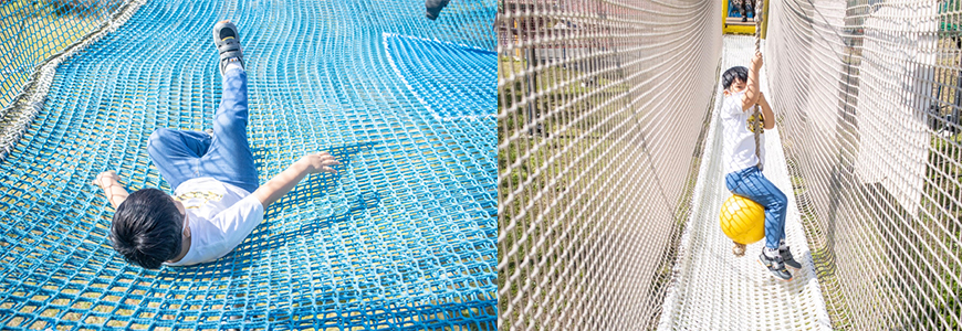 除了有可以體驗泰山的吊繩外,還有大片網狀廣場可以不停的彈跳。(媽媽頭暈了先去旁邊休息XD)