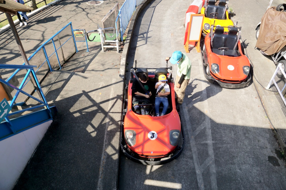 午餐後我們繼續前進「乘車(カート)」區挑戰F1賽車,這個算是我們整個樂園中挑戰的最刺激的活動,小孩必須4歲以上才可以坐在助手席,小五(身高必須滿140cm)才可以一人駕車。