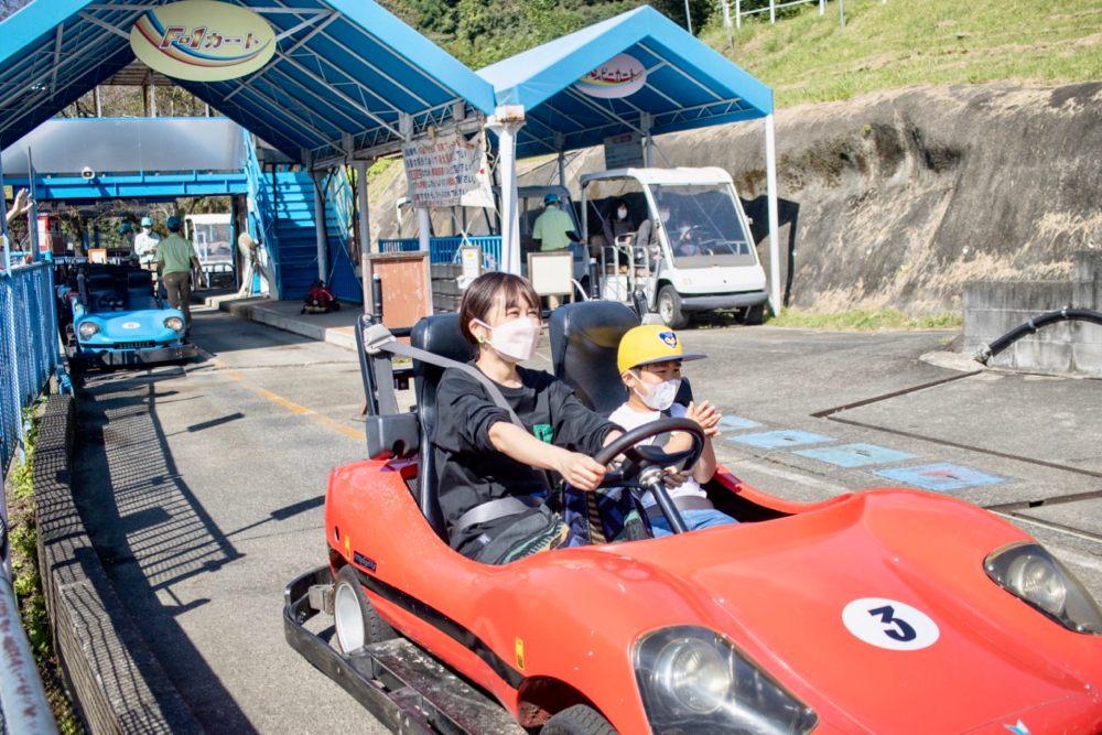 沿途會經過山路,上下坡以及S行窄彎道,是非常認真的賽車,除了加速外要記得踩煞車。每趟媽媽和豆豆都是從第一秒尖叫到最後一秒,非常刺激,但是車子的防撞設施做得很好,撞到牆壁時也不會有很大的衝擊力!這被豆豆票選為相模湖森林遊樂園中最好玩的設施第一名!