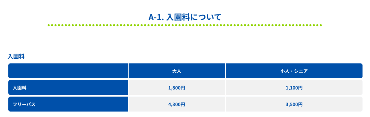關於票價,一般入場費是1800日幣,銀髮族和小孩是1100日幣,裡面的遊樂設施需要另外付費(每個項目300円~900円不等)。但如果想要無限次數玩的話,購買freepass大人是4300日幣,小孩3500日幣。