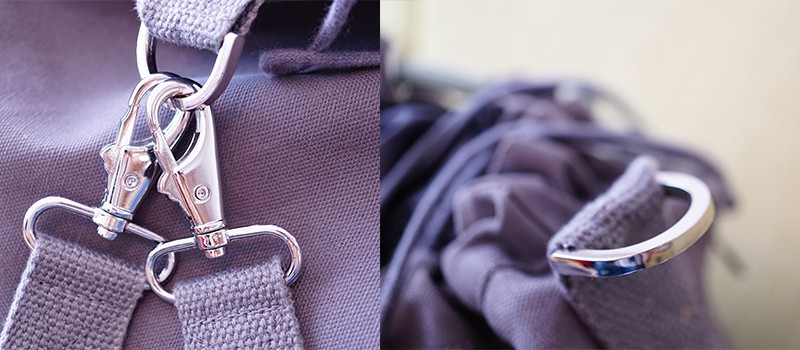 只要將背帶取下,往兩側扣環一扣,馬上就會變身超好看的側背包。