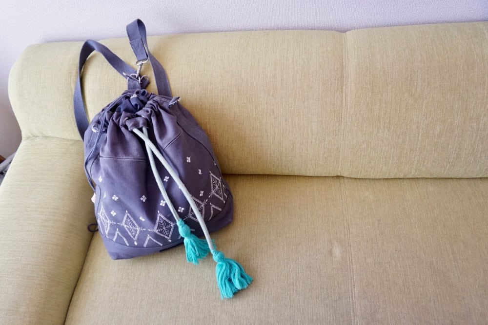 直到豆豆都一歲多了,我才遇到一個真的輕巧好背,不怕髒,內裏防水,有隔層袋,有附尿布墊(我是已經沒用到),重點是真的很可愛又好搭衣服的媽媽包。個人覺得灰色底色配上白色刺繡,再搭上亮眼的藍色的流蘇綁帶的設計真的很有質感,又很有朝氣。每次背出門都會被媽媽友們誇讚!