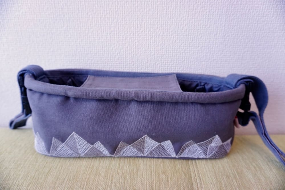 推車置物袋是媽媽們推嬰兒車出門時的好幫手,但是可以和媽媽包搭配成一組的置物袋很少見。MARA MEA的置物袋和媽媽包是一樣的材質,同樣也有細緻的刺繡。