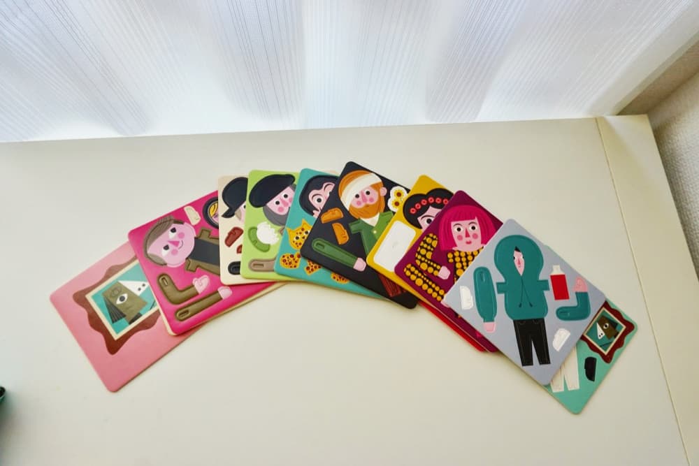 這款藝術家拼圖超~~可~~愛!!!因為材質比較纖細脆弱,我很怕豆豆無法控制力道而摧毀它們,所以就默默留著自己玩了。