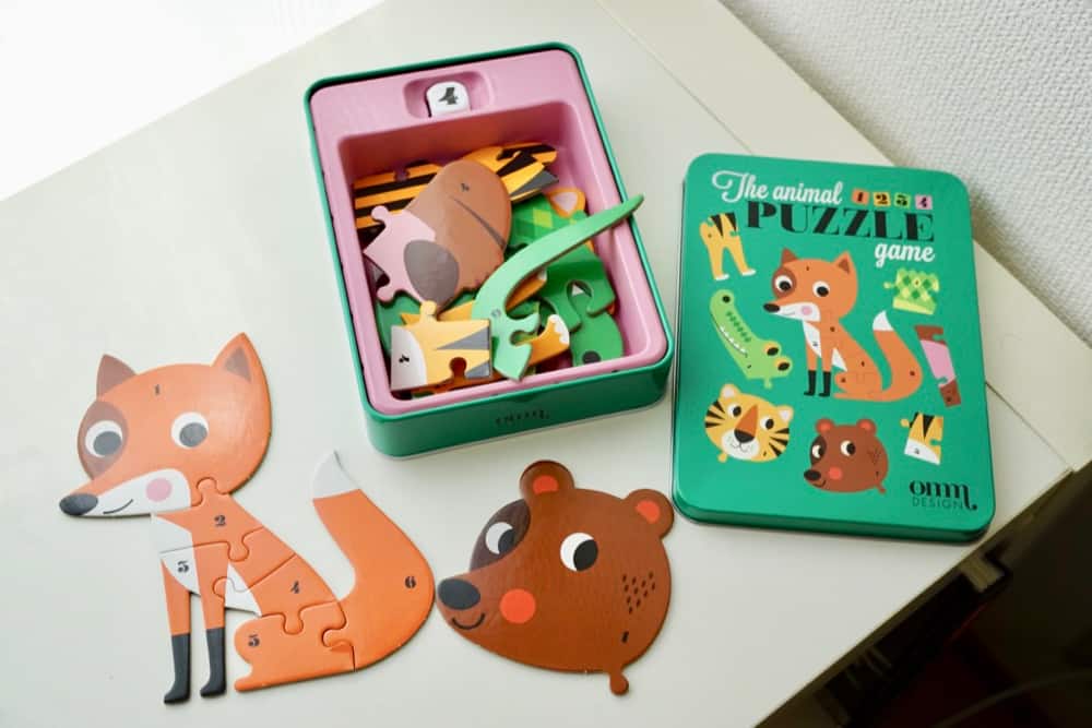 綠色這一盒是動物拼圖,可以讓小孩練習使用手指小肌肉以及學習數字。市面上有很多小孩拼圖,可是設計這麼可愛的真的難得一見啊!因為這組拼圖的動物們太可愛太療癒,我忍不住又入手了INGELA P ARRHENIUSE的繪本,她的設計風格真的讓人太喜歡了。因為是可愛的繪本還有遊戲,媽媽唸起來和玩起來也會特別起勁。