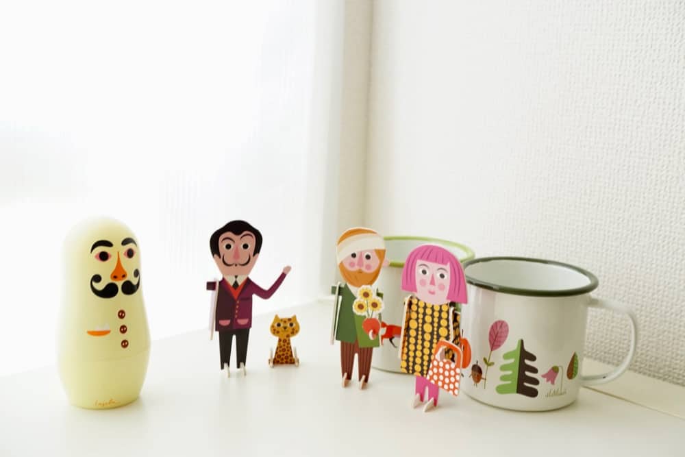 我才組好第一個藝術家,枝豆經過馬上就大笑說「草間彌生做得好傳神喔!」而且藝術家們身上都還有小配件或是帶著小寵物,細節超可愛,擺放在家裡面可以幫家具們畫龍點睛。