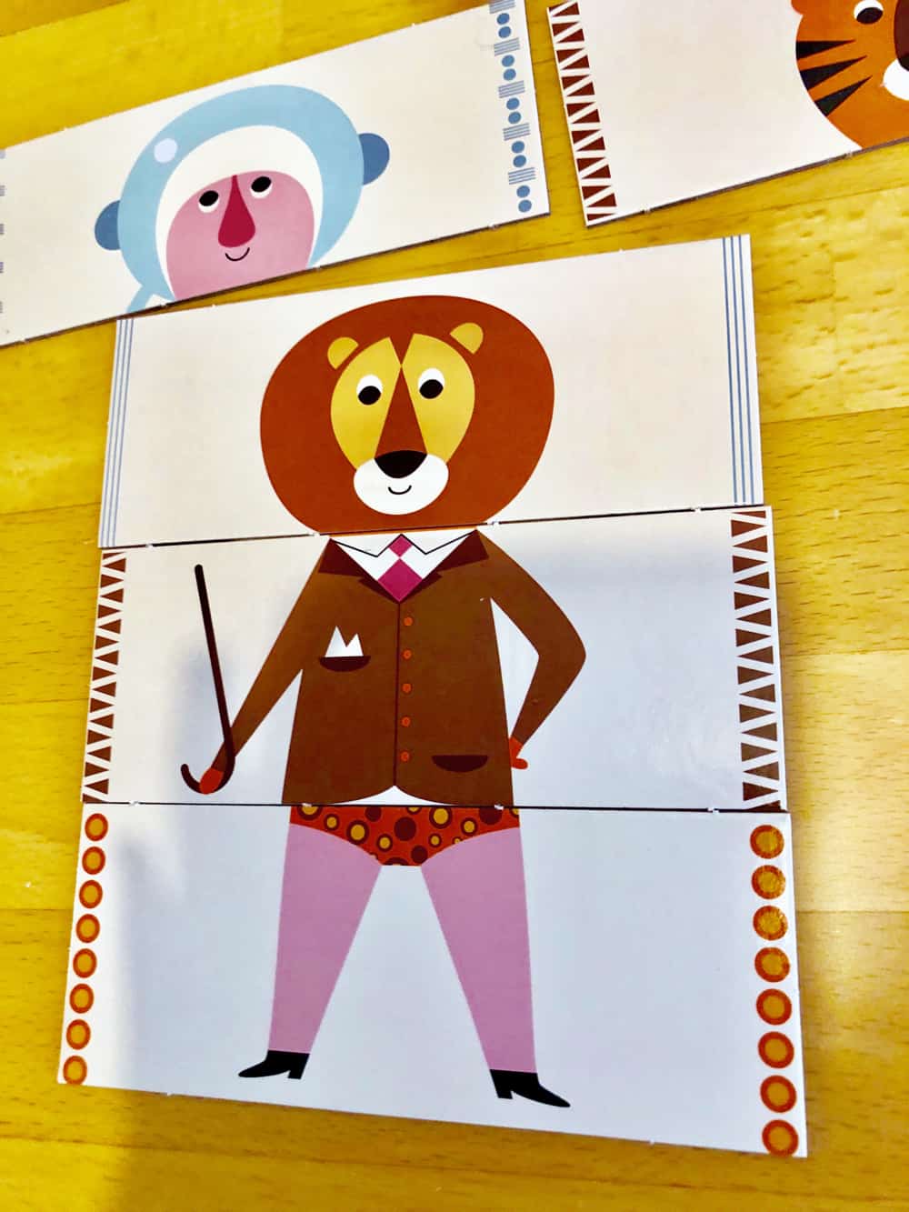 這組人偶穿搭配對遊戲豆豆超喜歡,雖然每次搭出來的服裝都很荒謬,但他都會很認真地跟我解釋。(例如他喜歡咖啡色上衣,或是獅子本人其實有雙粉紅色的腿XD)覺得是一組可以訓練小孩獨立思考的遊戲。