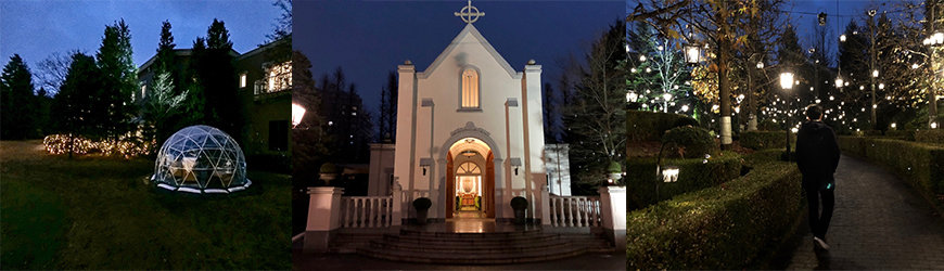 觀星完我就跟枝豆在點了燈的浪漫庭園逛了逛,才發現原來飯店裡面有一間別緻的小教堂。飯店也提供婚禮服務,這場景實在是太夢幻了,要是還有機會再辦一次婚禮真的會好想辦在這邊啊!整個美呆了!