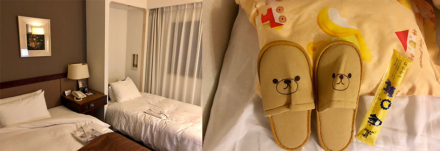 第三晚我們住在離車站走路10分鐘的仙台法華俱樂部酒店,check in的時候有領到豆豆的小朋友拖鞋,牙刷還有毯子。裡面有張小紙條說拖鞋和牙刷可以帶回家,非常貼心。