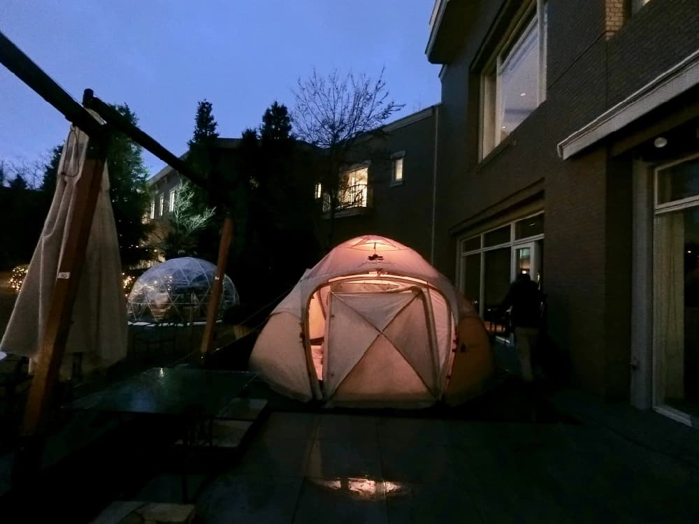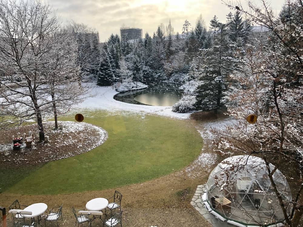 看一下我們昨晚Glamping的地方也變成這樣可愛的景色,一邊吃著早餐一邊欣賞雪景真的是太感動了。