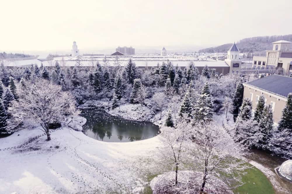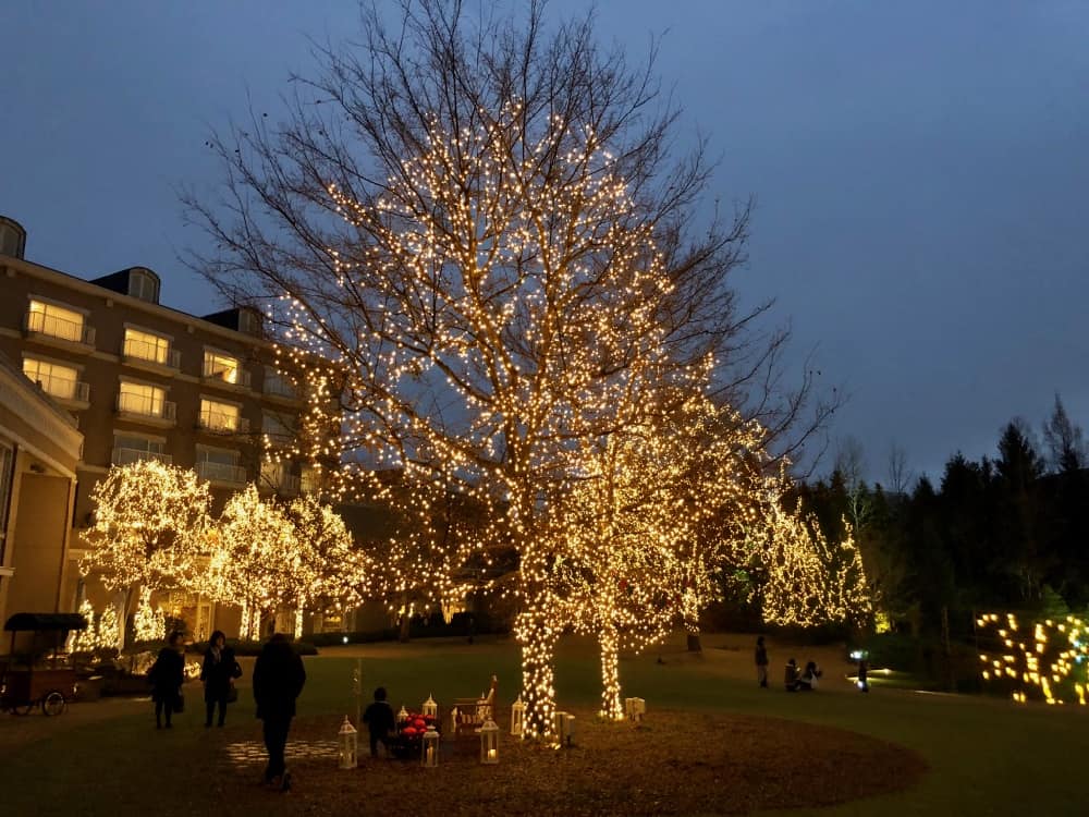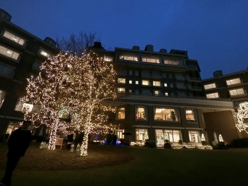 逛完了OUTLET後,我們就走路回來位於OUTLET旁邊的仙台皇家公園酒店。因為是冬天所以下午快五點天色就暗了,飯店的中庭已經開始點燈,我們一回飯店就被這夢幻的景色給驚艷。