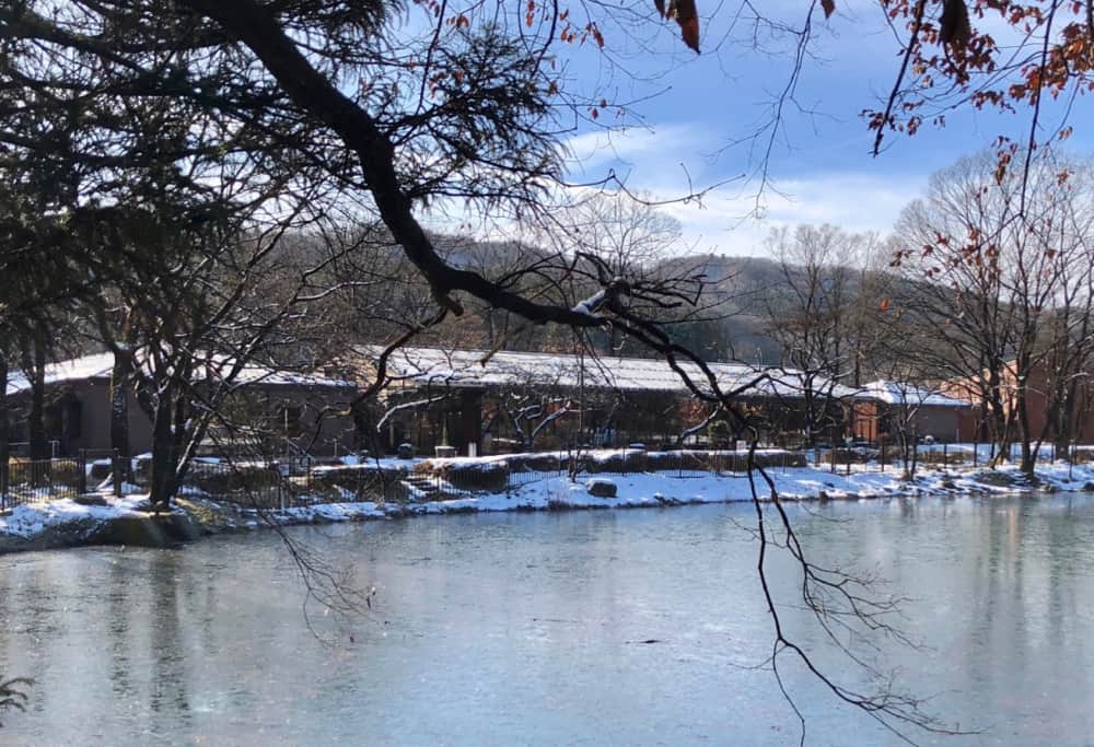 仙台蒸餾所得靈魂所在,「Nikka池」,配上雪景非常美。