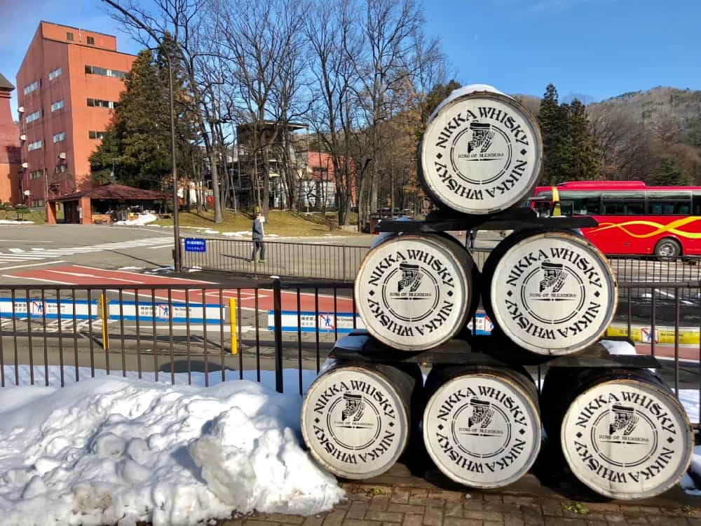 我們拜訪的當天積雪還沒退,但是天氣非常晴朗。宮城峽蒸餾所比余氏蒸餾所大上很多,根本就是個公園那麼大,豆豆在裡面跑得好開心。