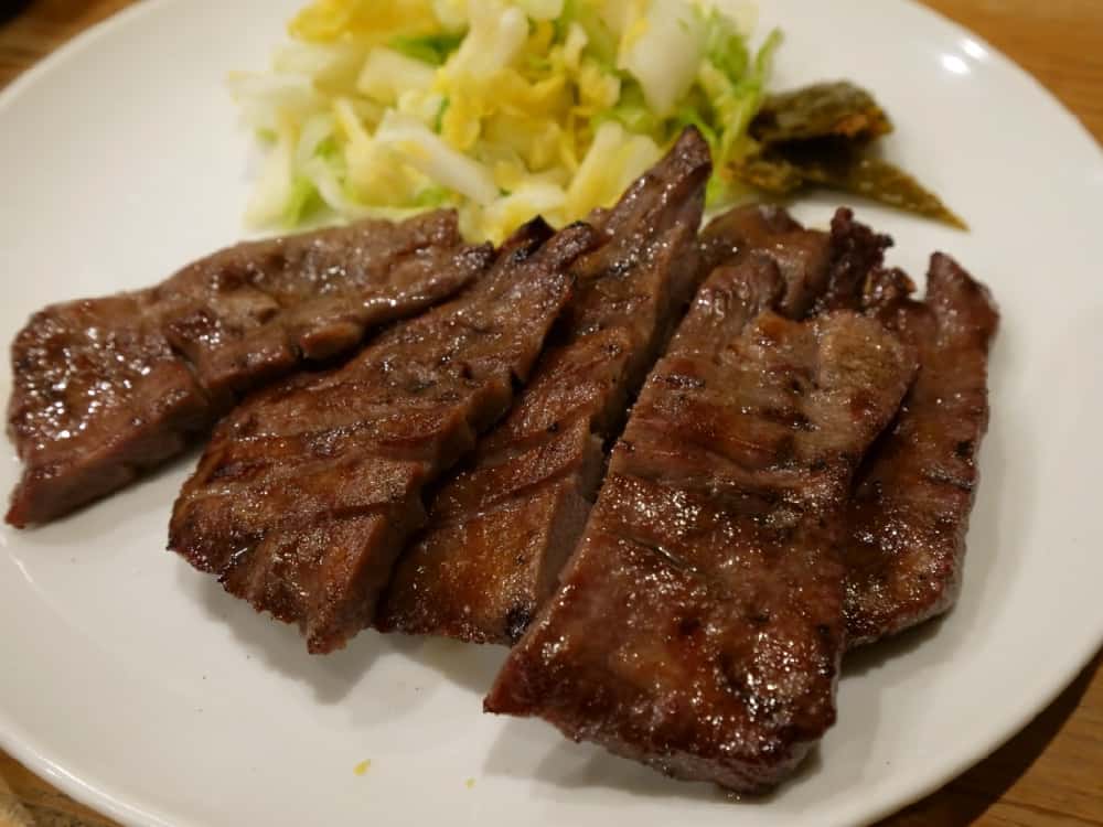 炭火烤的牛舌非常多汁,軟硬適中超下飯的!右上角是當店的自家製辣漬菜,據說在仙台點牛舌都一定會配上這個小菜,搭配牛舌一起吃真的是一絕!