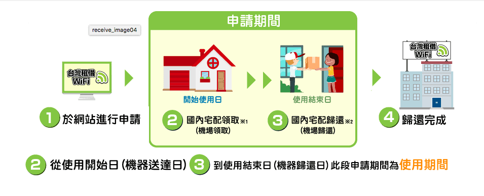 租借方式超簡單,只要在需要使用機器的3天前24:00上網使用信用卡申請(請注意只能使用信用卡付款喔!並且要透夠網路申請)之後選擇要親自在機場(松山以及桃園機場第一第二航廈都有服務櫃檯)領取,或是宅配到家裡(或者任何能收件的地點,飯店或是醫院也可以)。我因為一定都會進出機場,所以選在機場櫃檯領取和歸還。松山機場的領取點就在出境大廳一出來的左手邊。