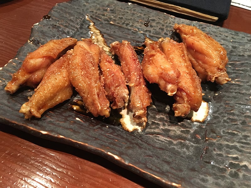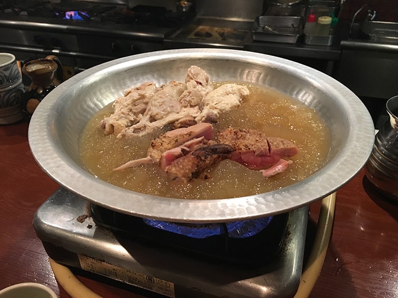 另外還有一件事情想提,就是師傅超親切的,在鍋還有我們點的炭烤雞串還沒上來前居然怕我們等太久就請我們吃了他的拿手炸雞翅!「這就是真正的*お、も、て、な、し呀!」(*中文:細心款待的日本服務精神)。看到別人點了石板烤雞,真的是把一片石板放在火爐上烤得火熱然後把雞肉放在上面熱騰騰地送到客人的面前,看著雞肉在石板上滋滋作響香氣四溢的樣子我決定下次一定要點點看。