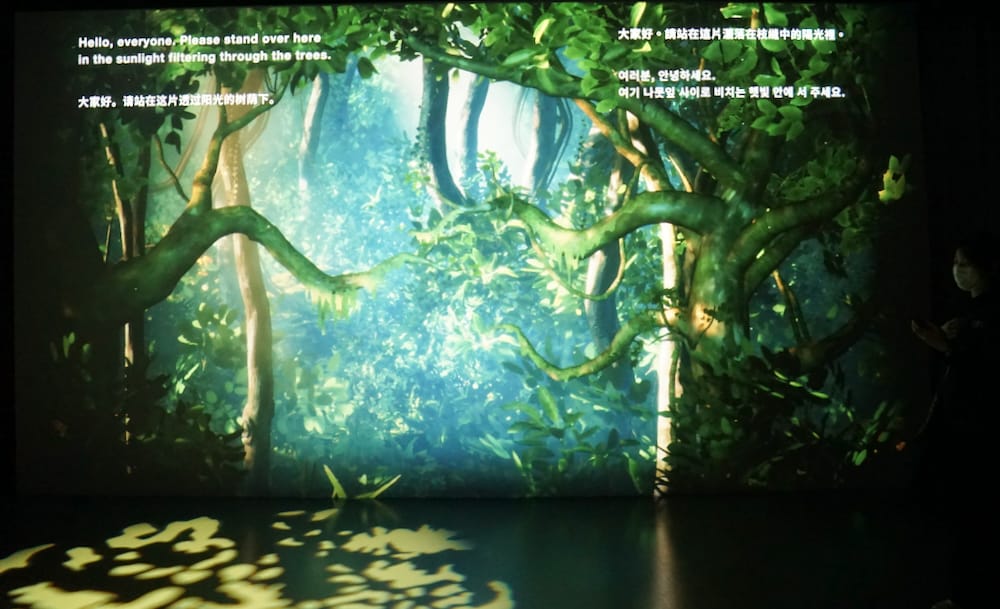 我真的很想大誇「銀座圖鑑博物館」的是,不僅開場區的影片有中文字幕解說,紀錄之石竟然還可以選擇「繁體中文版」。所以大家不用害怕日文不通沒辦法玩,動物名稱和情報全都有繁體中文解說喔!這點就給五顆星啦!這個紀錄之石在黑暗森林中會不停變化顏色超有魔幻感的,豆豆超愛!