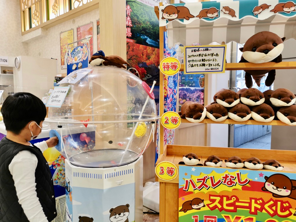 一到達仙台機場,豆豆馬上就被可愛的小水瀨給吸引目光。這個小水瀨據說是仙台海洋森林水族館的大明星。這個抽抽樂玩一次日幣1000円,不過一定有獎。最後豆豆得到3等獎。