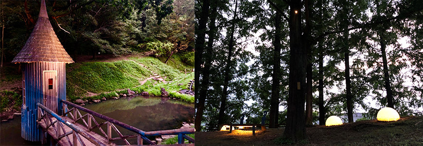 在點燈的公園散步別有一番風景,森林中的小角落充滿各種驚喜。