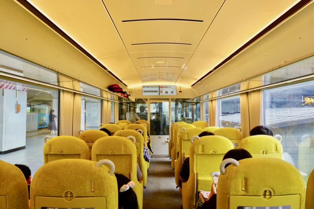 車廂內隨處可見可愛設計,搭配黃色明亮車身讓人心曠神怡