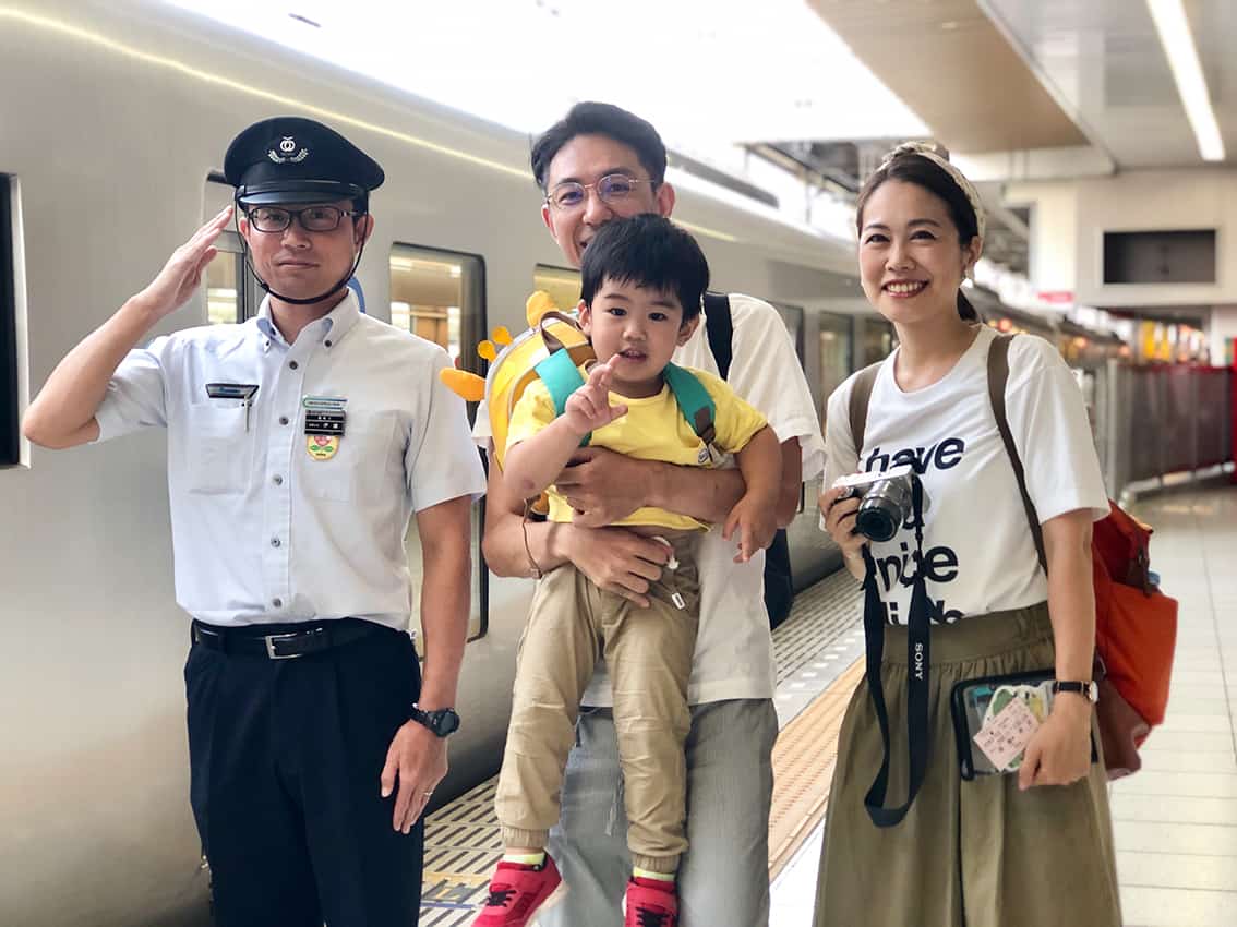 資深鐵道迷爸爸見到駕駛經過,立刻要求跟他合照一張。我家的大小鐵道迷同時圓夢了XD